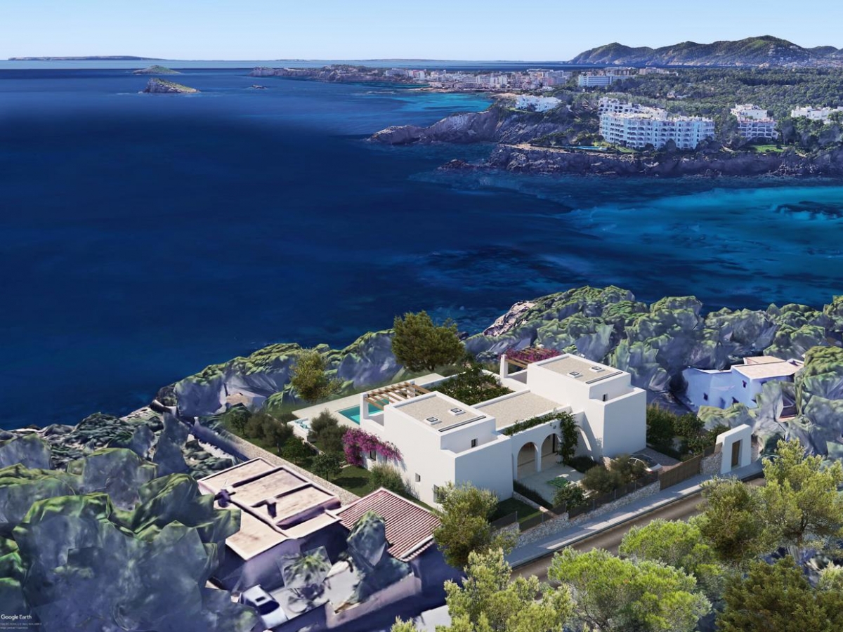 Situated on a 1,700 square meter plot bordering the seafront, Casa Minerva boasts breathtaking views of the idyllic coast of Cala Llenya, San Carlos, Ibiza. With a blank canvas awaiting its transformation and already granted building permits, this project is ready to continue construction at your convenience.