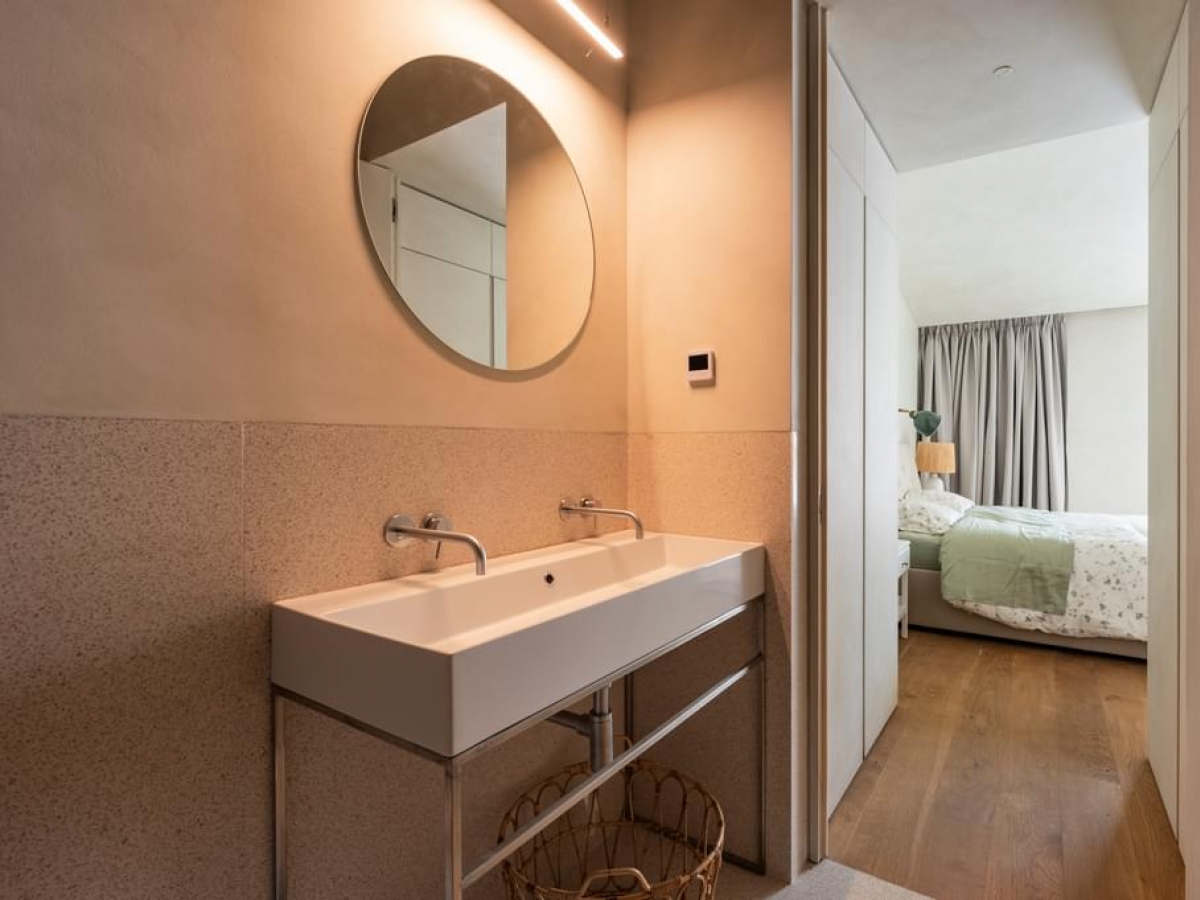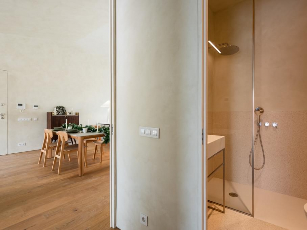 With natural waxed floors, lime and brick plasters in the bathrooms, glass on the facades, large windows to take advantage of sunlight. These serene and welcoming spaces offer the owner a welcome relaxation from the hustle and bustle of the city and provide a welcoming environment in which to enjoy a peaceful environment after a long day.