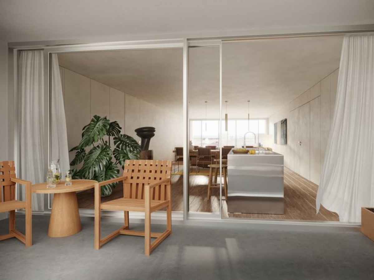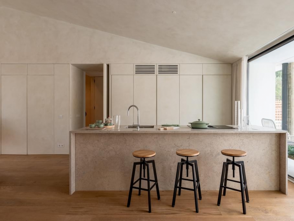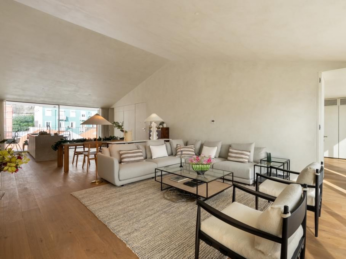 Located in Marvila, close to the center of Lisbon, this 116.88m2 T1 stands out for several reasons. Whether for the mesmerizing facade, the interior layout that connects all parts of the house to make it one or the incredible 66.82m2 garden. There's a lot to love about this apartment.