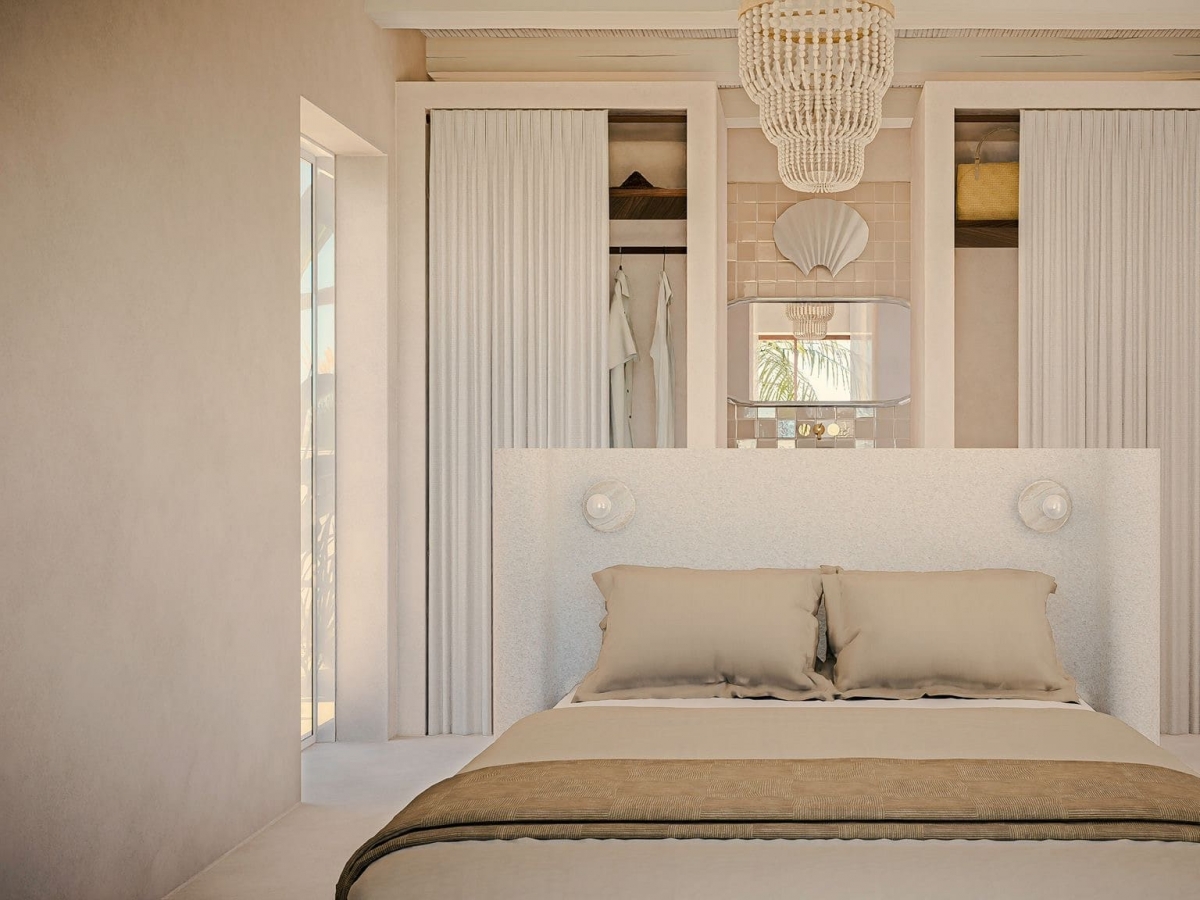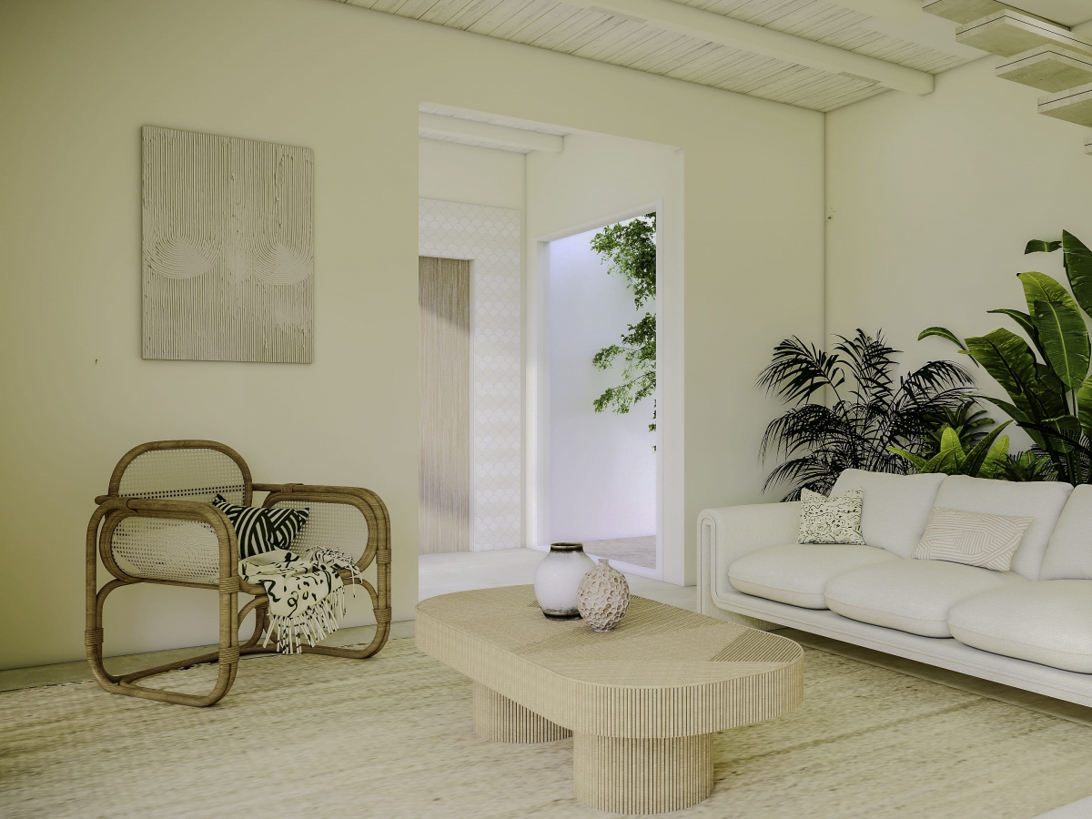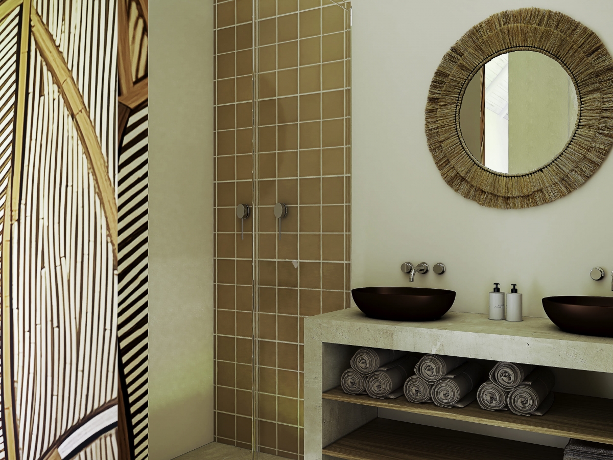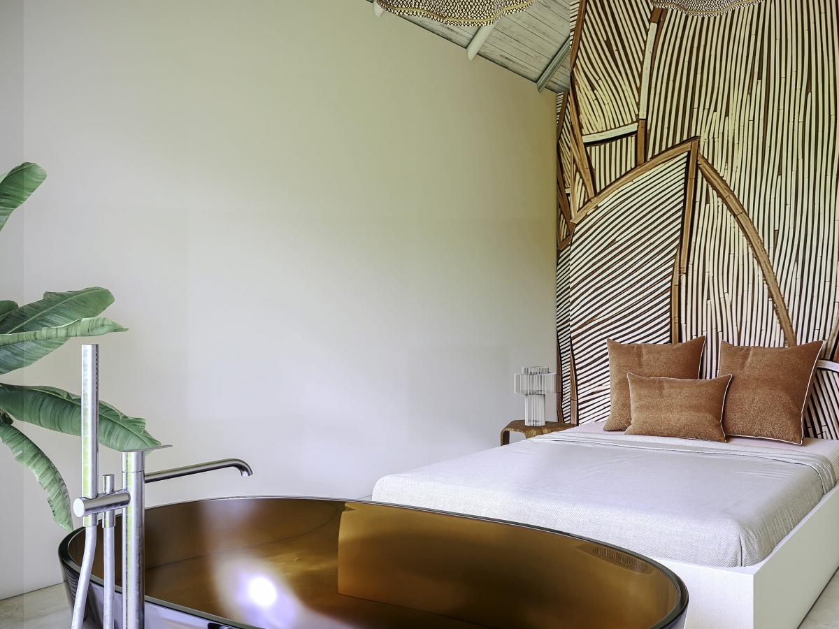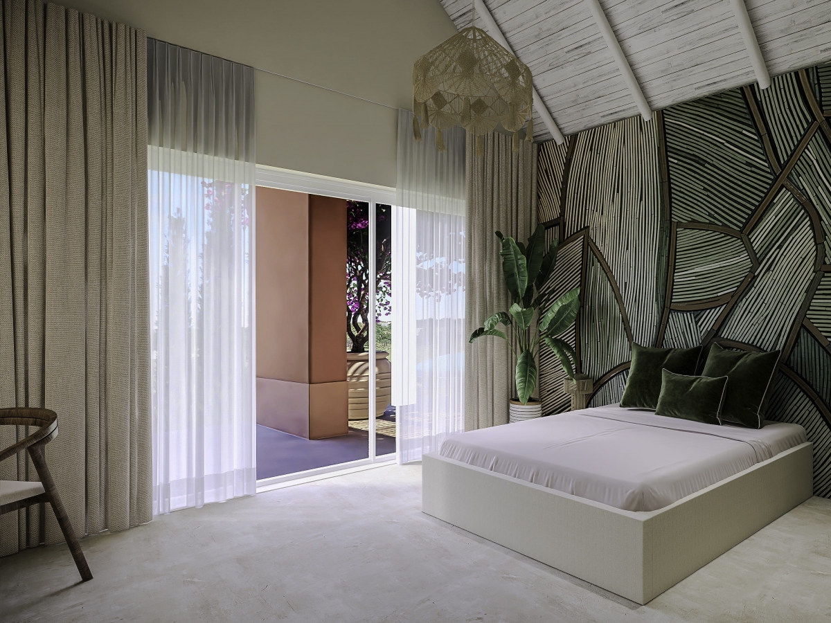 Cada suite reflete uma fase diferente do ciclo de vida do arroz, com paletas de cores distintas que simbolizam o abrolhamento, a floração, a colheita e o grão. A casa torna-se uma extensão do seu meio envolvente, abraçando a natureza como parte essencial do quotidiano.